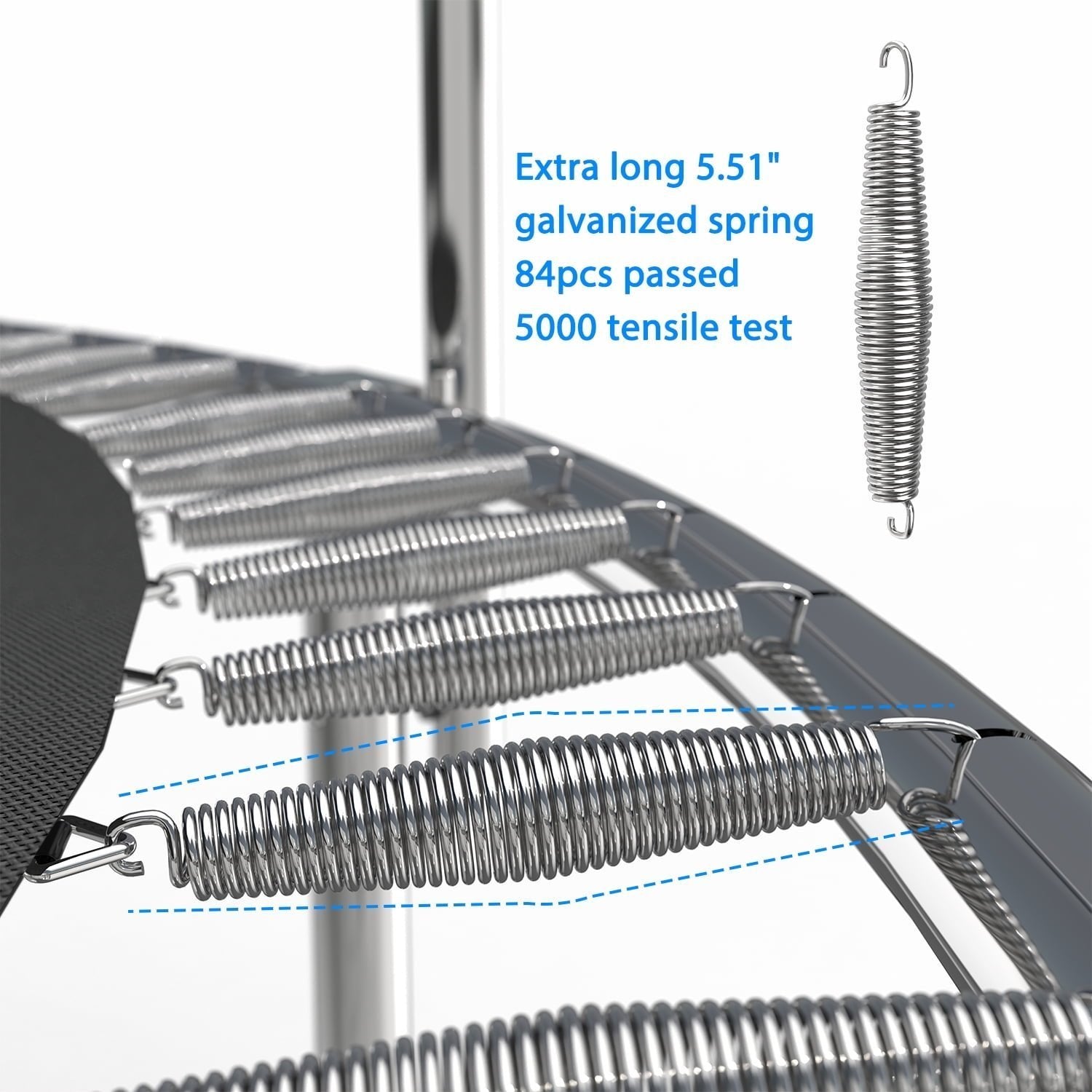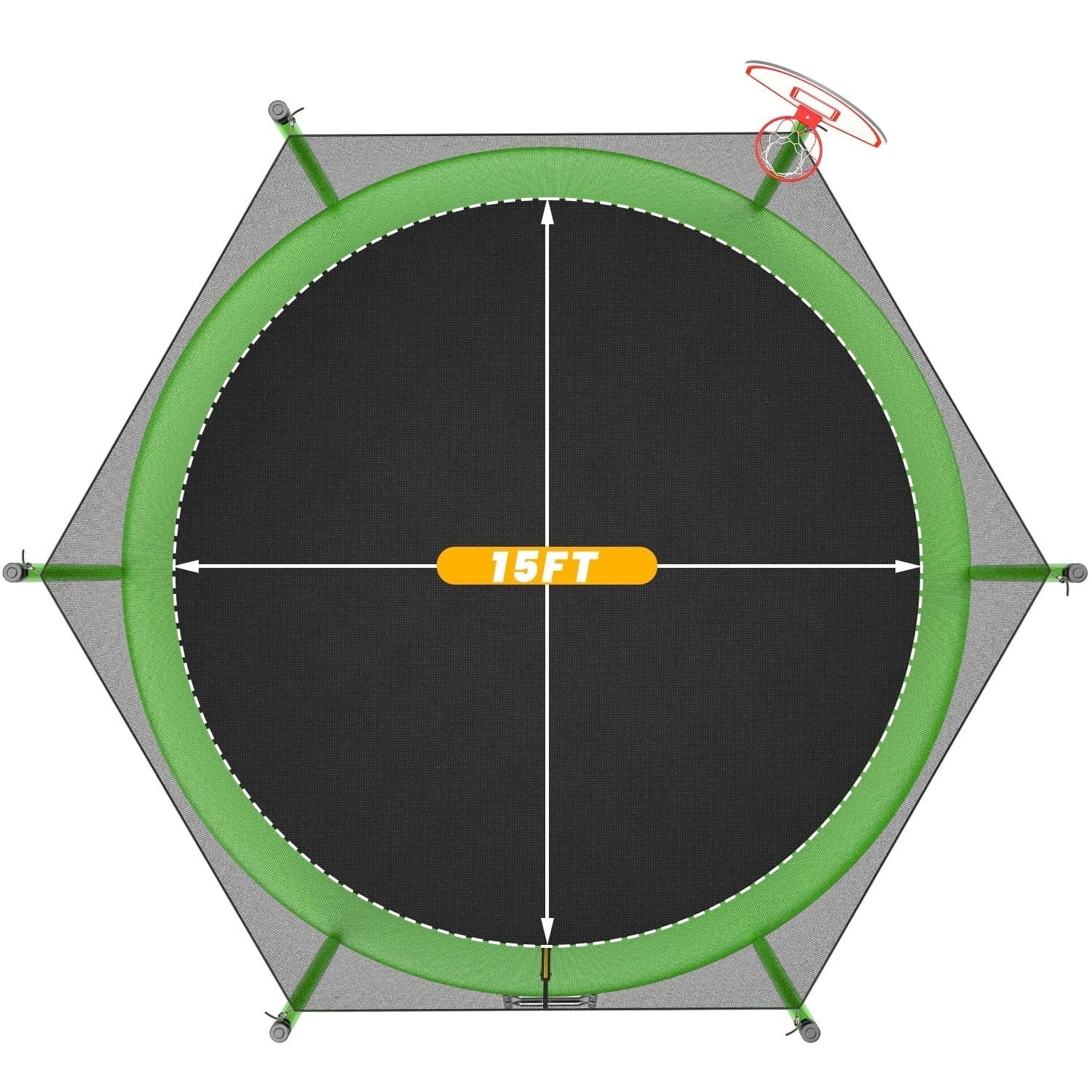 【Safety 15Ft Trampoline】Mersco 1320 lbs load-bearing 15ft trampoline, adopts 1.2mm fully galvanized steel frame, 5.5in long galvanized springs, can accommodate 7-9 children, and meets advanced international component, assembly and usage standards. In addition, the 72-inch high-density PE safety net is UV-resistant, waterproof and tear-resistant.Unique 6 balance bar plus 6 W-shaped legs provide double stability. Double zipper and buckle closure system ensures the safety of users when jumping.Note: Single-person weight limit is 330 lbs.